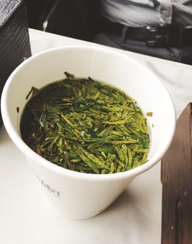 坐在记者对面的一位徐州乘客表示不想买,列车员露出了很为难的表情,告知不买茶的话便不能坐在这里。于是那位乘客说,“我先看看茶单吧。”就在看茶单的过程中,列车员不时地前来催促有没有点好,来来回回共四五遍。最后,这位徐州乘客无奈地点了一杯88元的茶。记者看到,这杯价值88元的茶,就用一个一次性纸杯盛着,上面飘着一小撮茶叶。
