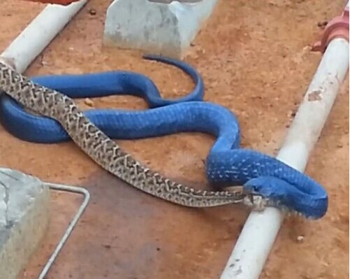 蓝色蛇吞食响尾蛇