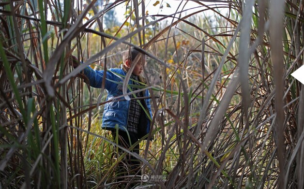 坤坤走路像兔子一样窜得飞快,一溜烟就不见人,一会从芦苇后面冒出头来。在一片芦苇丛边,记者问坤坤,“知道爷爷要把你送走吗?”“知道”,他点点头。“想去吗?”他沉默良久,摇摇头,转身去追远方的鸭子。